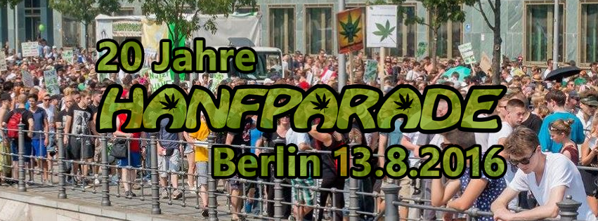 Am Samstag, 13. August 2016, wird die Hanfparade wieder in Berlin für die Legalisierung von Cannabis demonstrieren. Die erste Hanfparade startete im Jahr 1997, also 19 Jahre vor der 20. Hanfparade, die nächstes Jahr stattfinden wird. Da eine solche Demonstration mit einer großen Abschlussveranstaltung (Bühne, Nutzhanfareal, Patientenforum, Infoständen) eine lange Vorbereitungszeit braucht, die erfahrungsgemäß etwa ein Jahr dauert, heißt das, dass die Aktivisten der Hanfparade seit 20 Jahren für die Legalisierung arbeiten. Das Motto der nächsten Hanfparade lautet aufgrund der Entwicklung, wie man sie aus den Umfragen ersehen kann:
