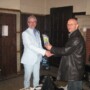El presidente de Trekt Uw Plant Martin Veltjen entrega una planta de cannabis a Freddie van den Berg, socio del Club social de cannabis