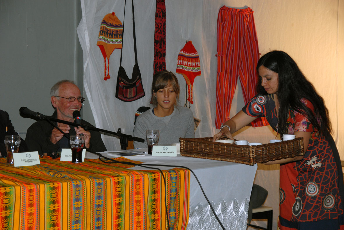 Met Roberto Calzadilla (Ambassadeur van Bolivia in Den Haag, Nederland), Sophie van Haasen (Universiteit van het Algemeen Belang), Chass Vermeulen Windsant (onafhankelijk onderzoeker, Nederland), Joep Oomen (Encod).