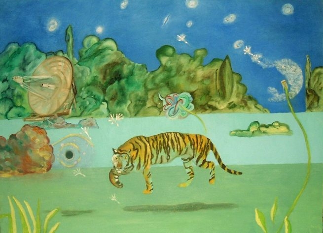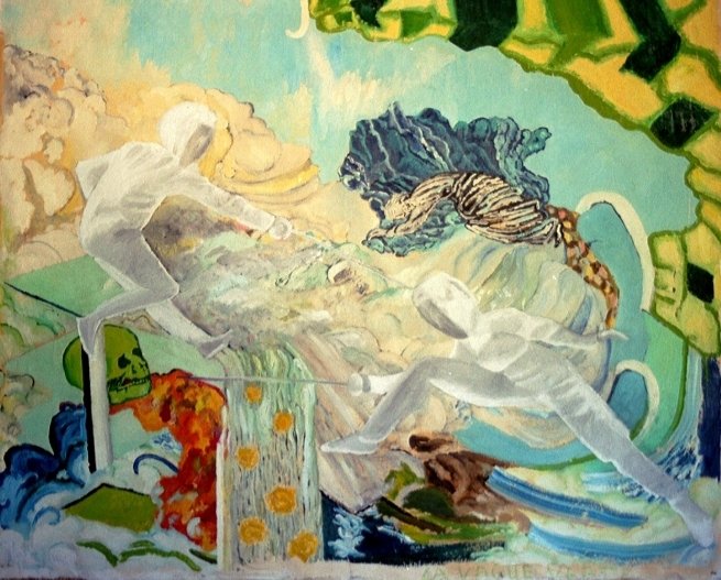 Painter since the age of seven (watching my mother painting landscapes), I made my first exposition at the age of 19 , as an autodidact. I was qualified as colourist and onirist, I am inspired by Van Gogh, Dali, I have sold various works, landscapes, always figurative. I have painted “my Joconde” close to Leonardo da Vinci’s, insisting on the phantasy landscape. I had to declare my sales, took courses at the Beaux Art Academy during one year, and got inspired by abstracts: Malevitch, Rothko, Pollock… and often van Gogh. I left to La Bretagne en Provence… Impressionnism, Abstract, Surrealism (I was attracted by Lacan…) I qualify myself as baroc with a dominant romanticism. My life is close to that of writers. The myth, the post-modernity, techno, these are my study objects.