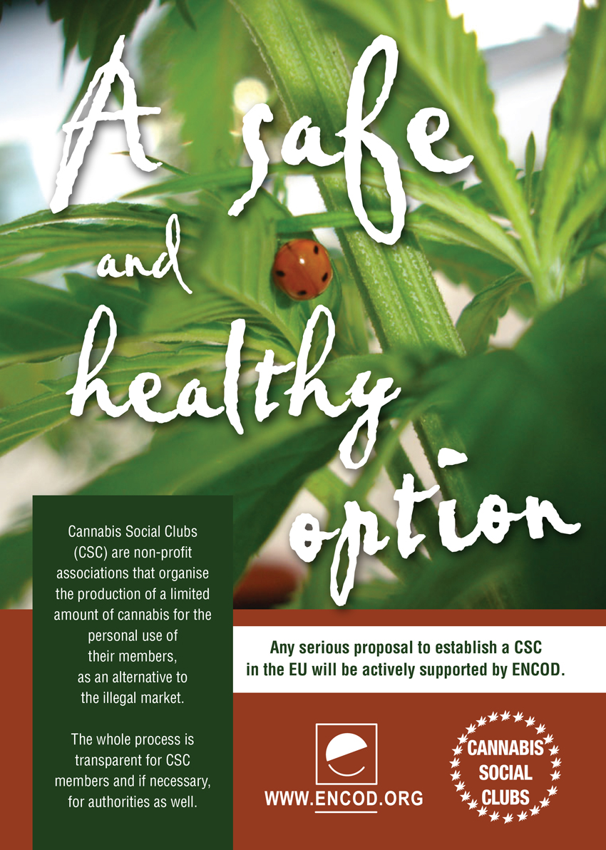 Encod promueve el modelo del Cannabis Social Club en toda Europa. En la Asamblea General en Eslovenia llegamos a un acuerdo sobre un esfuerzo por crear una plataforma europea de CSCs. Esto llevó a la puesta en marcha de un sitio web para CSCs europeos, pero esto no atrajo una gran cantidad de clubes a unirse todavía. Al parecer, la gente usa el CSC como un nombre de marca para establecer iniciativas locales para reunir a la gente en torno a la idea, pero la mayoría de ellos no lo practican como una guía para la acción.