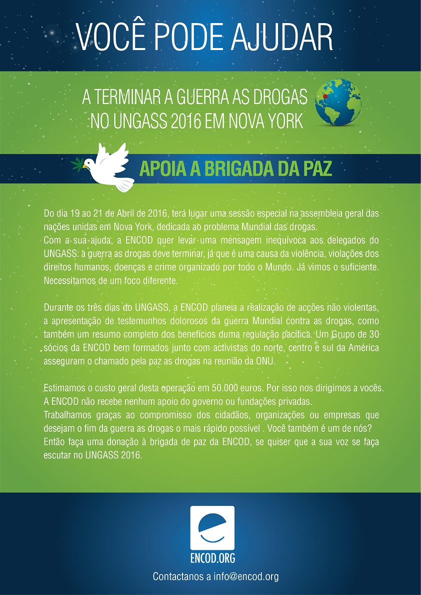 Se não podem apoiar com dinheiro, também podem participar enviando a carta de Encod solicitando aos parlamentares organizar um debate verdadeiro sobre as políticas de drogas no seu País.