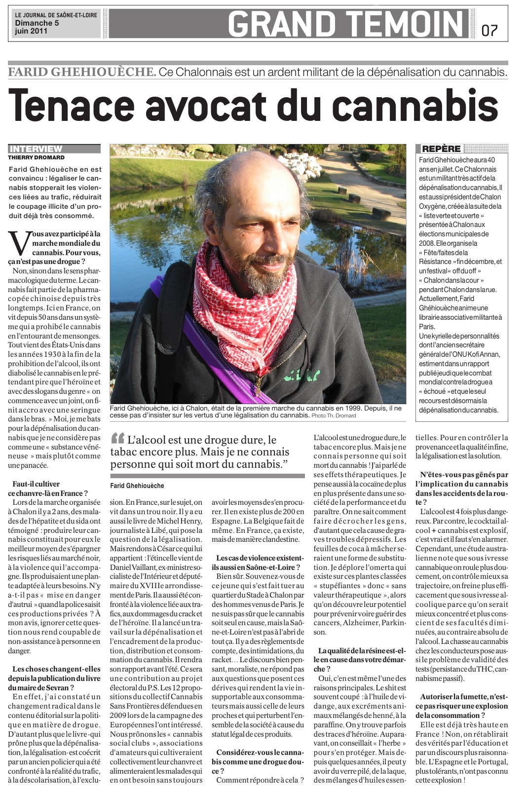 TENACE AVOCAT DU CANNABIS June 7, 2011 by ENCOD with no comment Uncategorized Source: Le Journal de Saône et Loire 5 juin 2011 Previous Post BULLETIN ENCODU 76 Next Post DÉBAT AU MAROC: FAUT-IL LÉGALISER LE CANNABIS? ENCOD