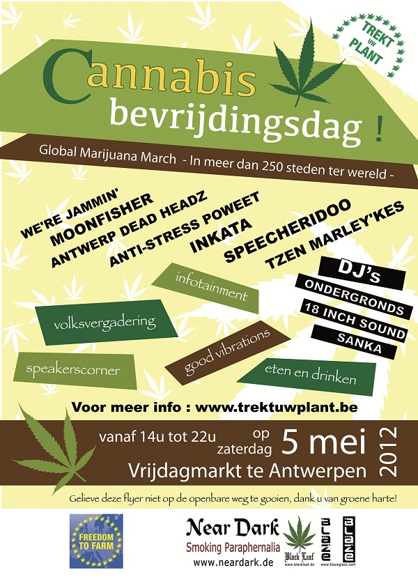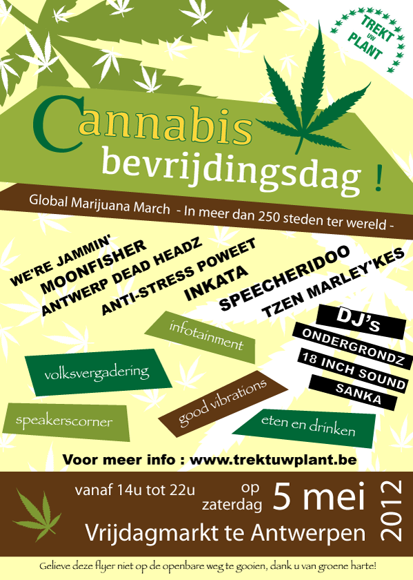 ANTWERPEN – Op de jaarlijkse cannabisbevrijdingsdag op de Vrijdagmarkt in Antwerpen heeft organisator Trekt Uw Plant zoveel mogelijk cannabisgebruikers warm proberen te maken voor het concept van de Cannabis Social Clubs. Het regenweer gooide echter roet in het eten, want de opkomst lag een stuk lager dan verwacht.